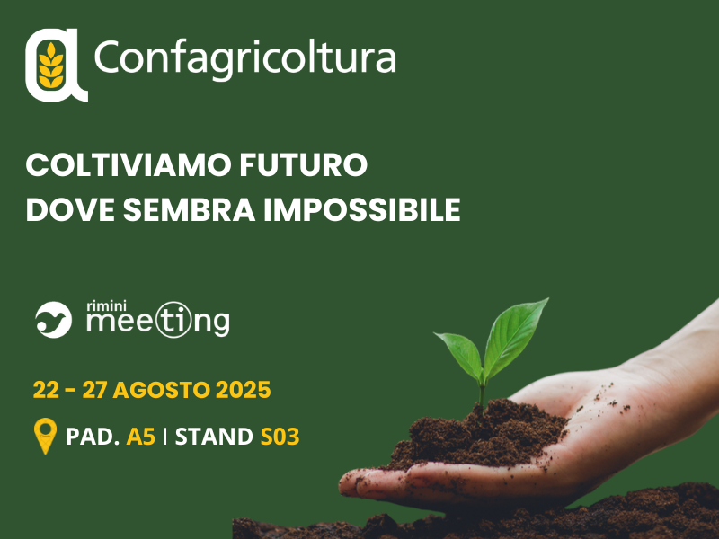 Confagricoltura ritorna oggi al “Meeting per l’Amicizia fra i popoli”, a Rimini, sino al 27 agosto con un ampio spazio dedicato a incontri, laboratori e approfondimenti che hanno come fil rouge l’agricoltura di domani.
