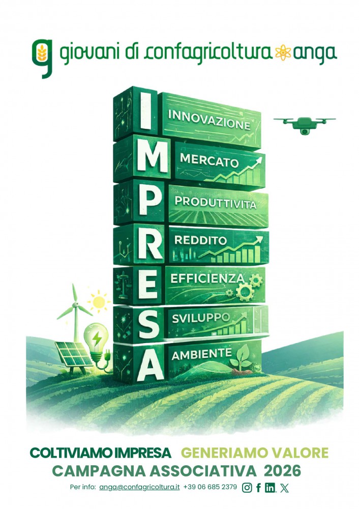 E' partita la campagna associativa Anga 2026. Lo slogan che accompagna quest’anno la campagna è “Coltiviamo Impresa, generiamo Valore” che vuole mettere in evidenza gli aspetti legati all’attività imprenditoriale dando risalto in particolare alla redditività e all’inserimento dell’azienda agricola in un moderno contesto di mercato.